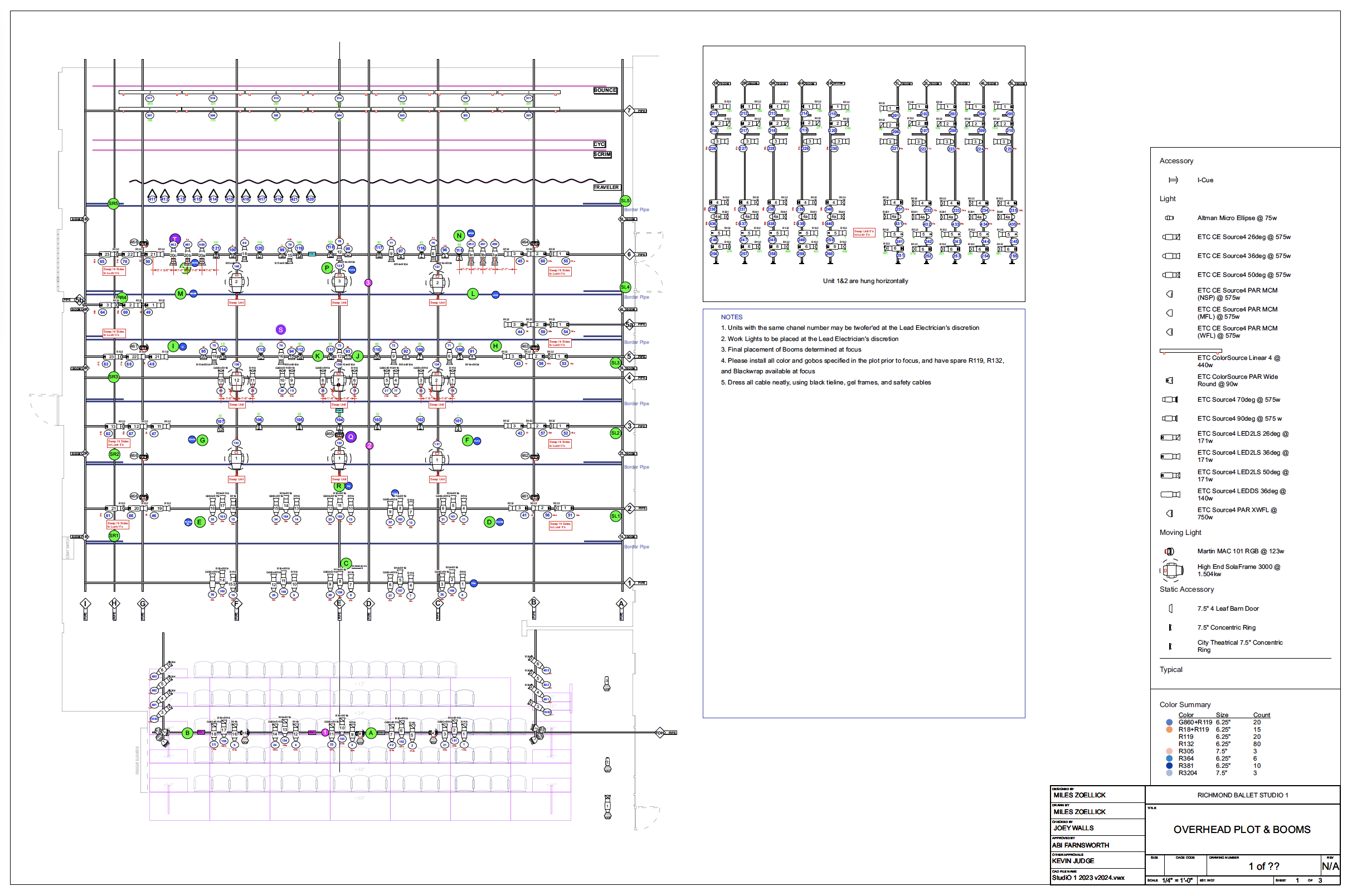 This was an exercise in how best to approach Dance Lighting – working from rehearsal videos, notes from, and conversation with choreographer Meg Paul to construct a design supporting her vision for the piece. My Research Presentation and Final Plot (with notes in red indicating adjustments from Rep) are embedded below.